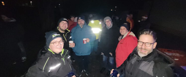 Waren wir beim ersten Adventsfenster im Bornheimer Weg noch in „Mindestbesetzung“ angetreten, waren wir beim zweiten Fenster dafür mit einer stattlichen Musikeranzahl vor dem Landfrauenheim erschienen. Neben Gedichten und weiteren Vorträgen schaute auch noch der Nikolaus vorbei, um die anwesenden Kindern und Jungebliebenen mit einer kleinen Gabe den Abend zu versüßen. Nach dem „offiziellen Teil“ spielten wir noch einige weihnachtliche Weisen aus unserem Repertoire. Eine schöne Veranstaltung, die von der Mörlheimer Bevölkerung gerne angenommen wird – und bei dem das persönliche Gespräch nicht zu kurz kommt. So lässt es sich gut auf die kommende Weihnachtszeit einstimmen.