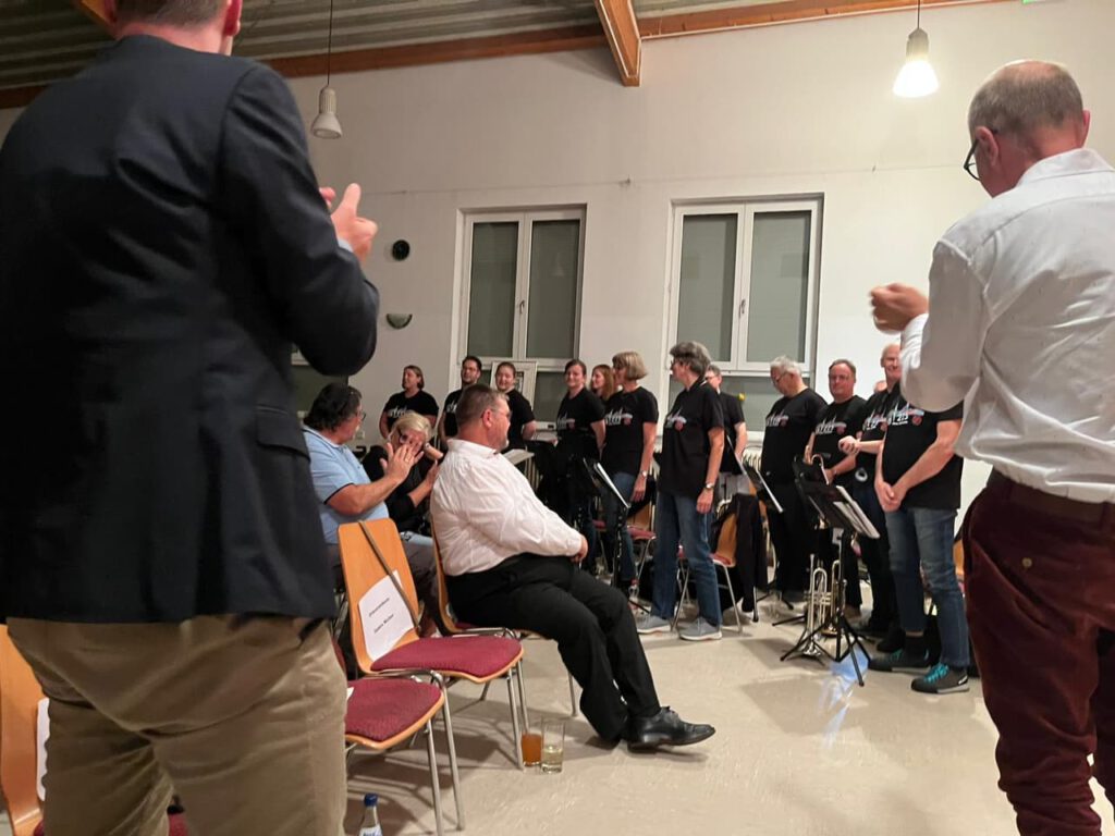 In Zusammenarbeit mit dem Kulturverein „Zugabe“ Mörlheim e.V. veranstaltete unsere Kapelle diesen Festabend. Niemand wusste im Voraus, mit welchem Besucherandrang wir rechnen (sollten). Es war für unsere beiden Vereine eine Wundertüte (vom absoluten Chaos (vor leeren Rängen), hin zu wagen Schätzungen (hoffentlich bekommen wir den Saal halb voll)) oder zur Vollauslastung des DGH. Dieses Risiko spiegelte sich dann auch in der Einkaufsliste (Speisen und Getränke) wider. Bei den Getränken war das ja relativ unproblematisch – aber bei der Speisenkalkulation kann es eben auch schnell zu einem finanziellen Fiasko für die Vereine werden. Auch für die Bevölkerung war es ein „Überraschungsei“, bei dem niemand genau wusste, wie die Verantwortlichen diesen Abend gestalten werden.