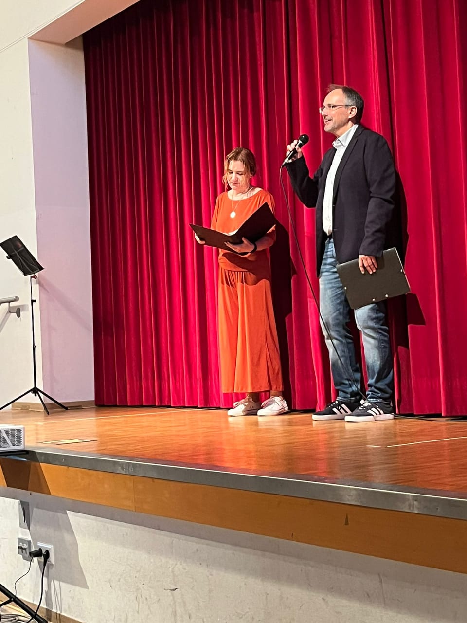 Gemeinsam mit dem Vorsitzenden Ralph Poh vom Kulturverein eröffnete unser Vorsitzender Volker Hörner den Festabend und begrüßte die Besucher, die den Weg in den großen Saal des Dorfgemeinschaftshauses in Mörlheim gefunden hatten. Die lange Geschichte Mörlheims wurde durch selbst gedrehte Filmszenen und Einlagen von Mörlheimer Jugendlichen erzählt. Neben den Informationen aus der Geschichte kam es zu mehreren lustigen Momenten, bei denen die Besucher die Akteure hinter den Kostümen erkannten. Auch unser stellvertretender Vorsitzender Achim Goldemann als „Erzähler“ wurde SUPER in Szene gesetzt. Alles Laienschauspieler aus Mörlheim – aber trotzdem super dargestellt!!!