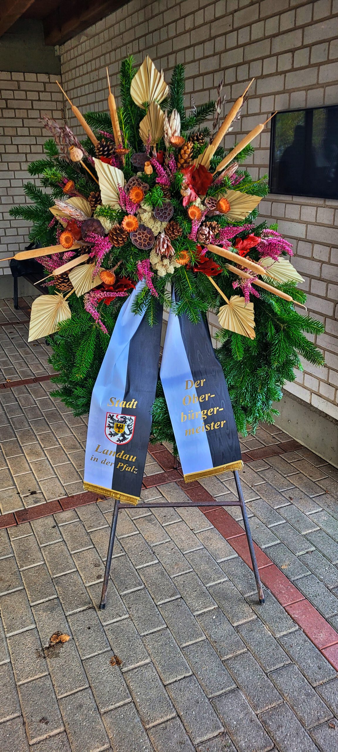 Die „unklare Wetterlage“ veranlasste unsere Ortvorsteherin Sandra Michler, die Gedenkfeier unter das Dach der Einsegnungshalle zu verlegen. So war es auch nicht nötig, den Teilbereich der Mörlheimer Haupstraße um das Ehrenmal der Gefallenen beider Weltkriege des letzten Jahrhunderts abzusperren. Der Beginn wurde auf 10:00 Uhr festgesetzt. Es fanden sich Besucher im mittleren zweistelligen Bereich ein, um der Gedenkveranstaltung bezuwohnen. Frau Sandra Michler legte nach ihrer Ansprache und den weiteren Gedanken der Vertreter der beiden kirchlichen Konfessionen Frau Marion Poh und Herrn Markus Blaum einen Kranz nieder und dankte nach dem offiziellen Teil allen Mitwirkenden und Besuchern für ihr Erscheinen und ihr Engagement.