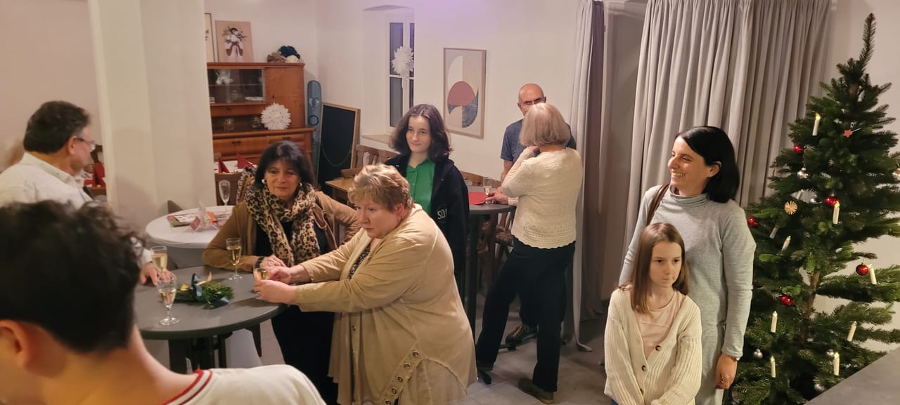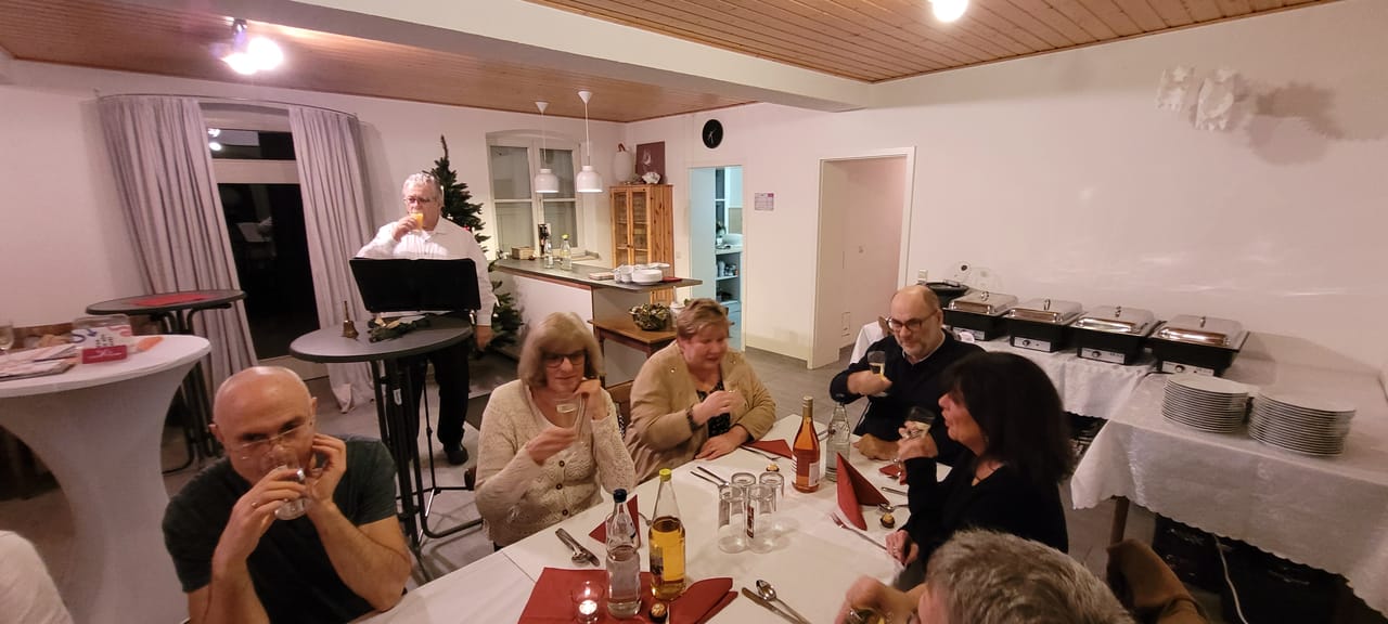 Im letzten Jahr fragten wir erstmals nach Lokalschließung unseres Vereinswirtes bei den Landfrauen nach, ob wir für unsere Weihnachtsfeier der Aktiven die Räumlichkeiten anmieten könnten. Die überaus positive Zusammenarbeit veranlasste und heuer erneut, für dieses vereinseigene Event bei dem Landfrauenverein nachzufragen. Der Termin war schnell fixiert, die Zusage bei uns eingegangen, der Vereinswirt mit der Verköstigung beauftragt und so konnten wir die Einladungen an unsere Aktiven, Vorstandsmitglieder und Gastmusiker verteilen. Aufgrund der Rückmeldungen konnten wir dann die Räumlichkeiten vorbereiten. Alles war pünktlich erledigt – und die Verantwortlichen unseres Vereins konnten nun die Gäste erwarten. Es blieb genügend Zeit, um bei dem Stehempfang jeden Einzelnen zu begrüßen. Besonders erfreulich war, dass erstmals seit drei Jahren unser stellvertretender Vorsitzender Achim Goldemann wieder an einer Feier unseres Vereins teilnehmen konnte.
